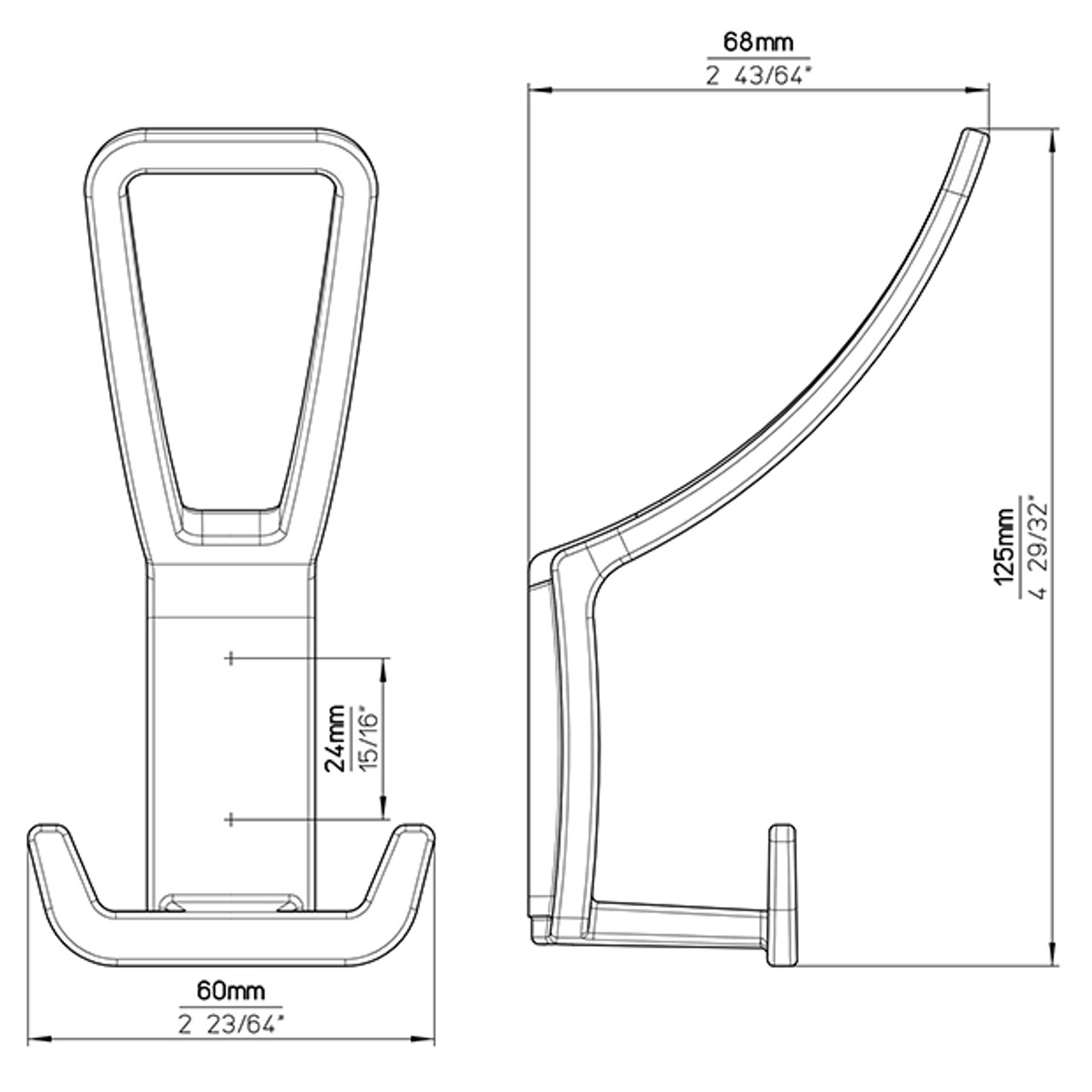 Lochabstand: 24 mm (Löcher sind verdeckt)